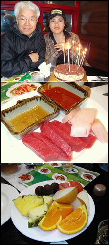 가족이 함께 참치집엘 갔습니다. 아들녀석이 사들고 들어온케익을 들고,생각보다 사람들이 너무 많았습니다.