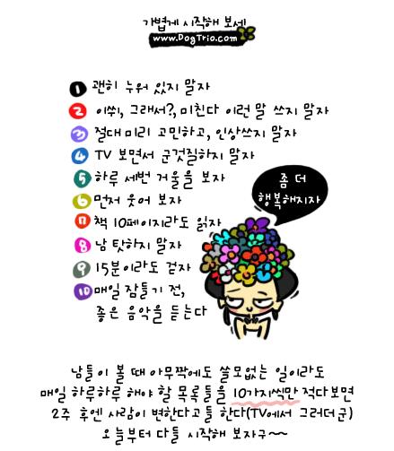 3번과 8번을 제외하고....-_-;; 나머지는 거의 매일 하고있는 거신디... 난 안변하던디??-,.-;;; 말 그대로 그 자체가 익숙하기때문에 일부분이 되어서일거다... 음.....-_-;;