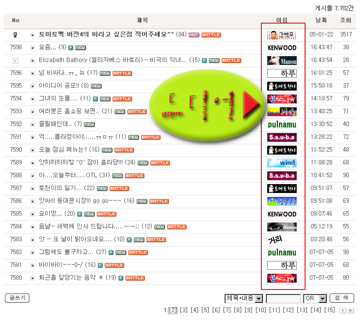 멋진 분들의 이쁜 회원아이콘이 한 페이지를 장식하는 날을,...