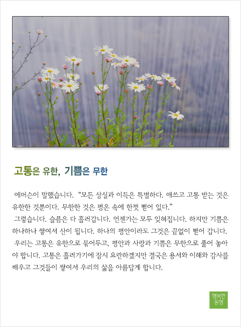 고통은 유한..기쁨은 무한