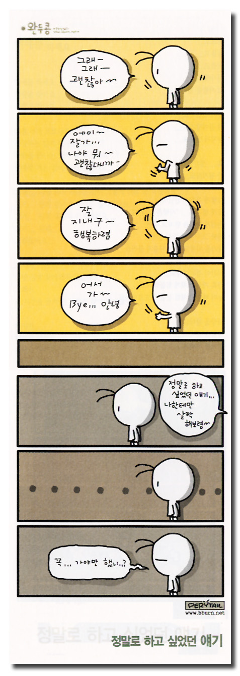 맨슨님... 글겠져? 그냥 잠시 내가 아프고만게 더낫겠져? 더이상 붑잡으면 그건 집착이 될수도 있잖아여.. 음~~아닌가? -_-