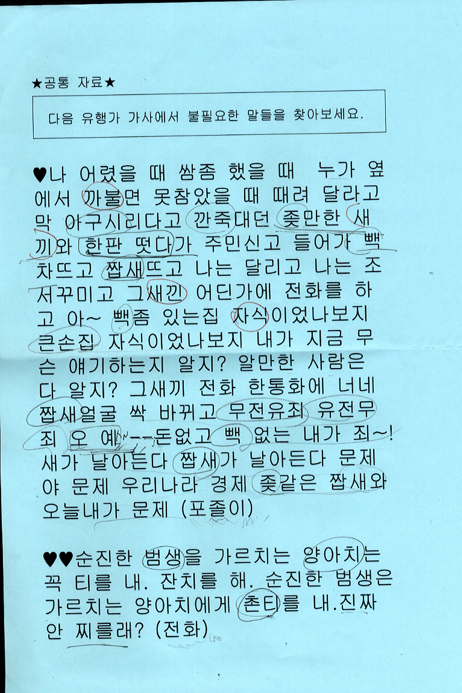 이런 노래가사도 있었나요?