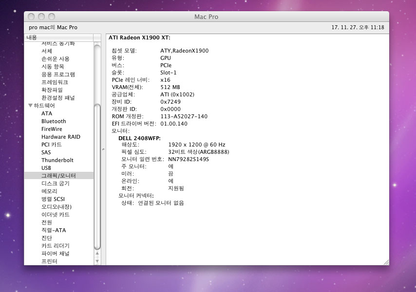 1. 맥프로 인텔제온 2.66Ghz xeon 2코어 x 2 (쿼드코어)
