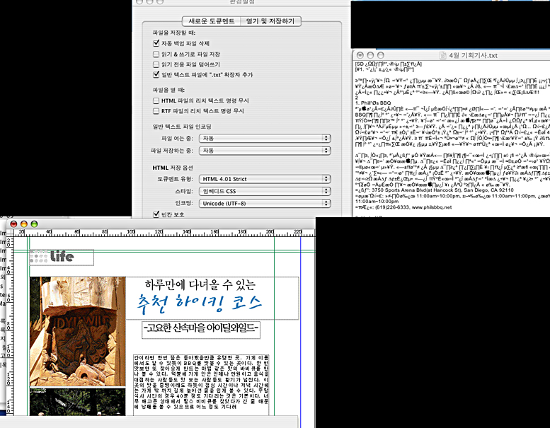 노트를 열면 저렇게 글씨가 깨집니다...