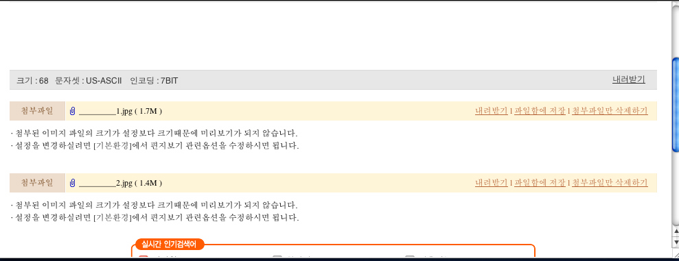 메일을 올려도 첨부파일 이름이 안오거나 웹하드에올리면???????????가 나오내요