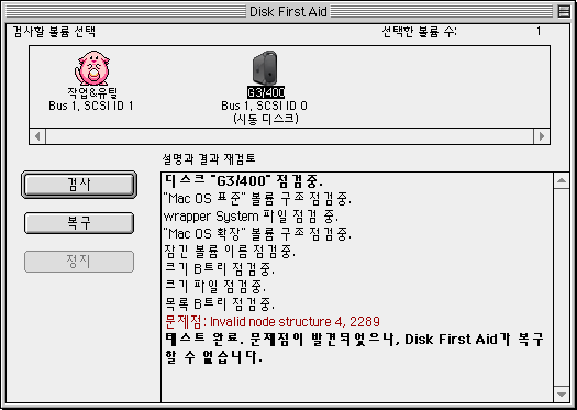 시동 시디 넣고 Disk First Aid 를 돌렸는데...