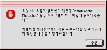 설치 프로그램이나 한글시스템에 666바이러스가 있어도 그런문제가 생깁니다.(OS 9시디나 외장으로 부팅후 agax 1.3으로 치료)
