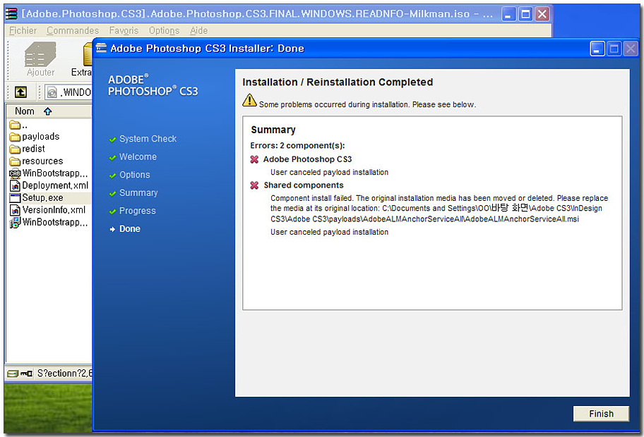 cs3를 다시설치하려고 하는데 에러가 뜨고 설치를 못하겠네요