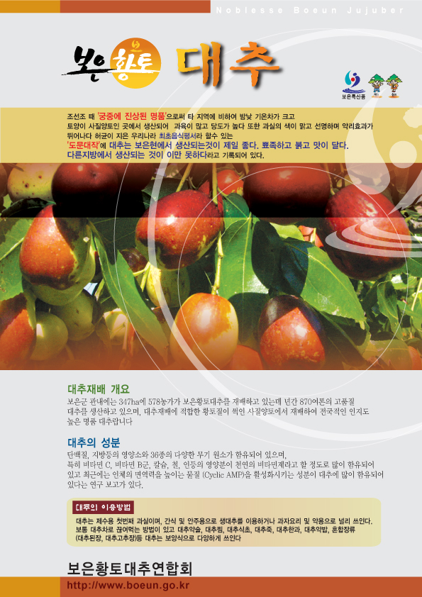 내용은 보은군에서 재배된 대추는 조선조때 궁중에 진상된 명품대추란거구요