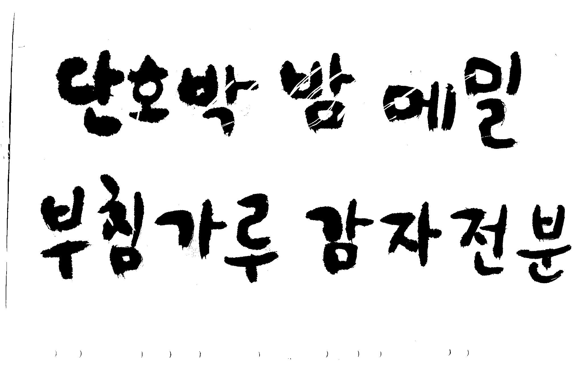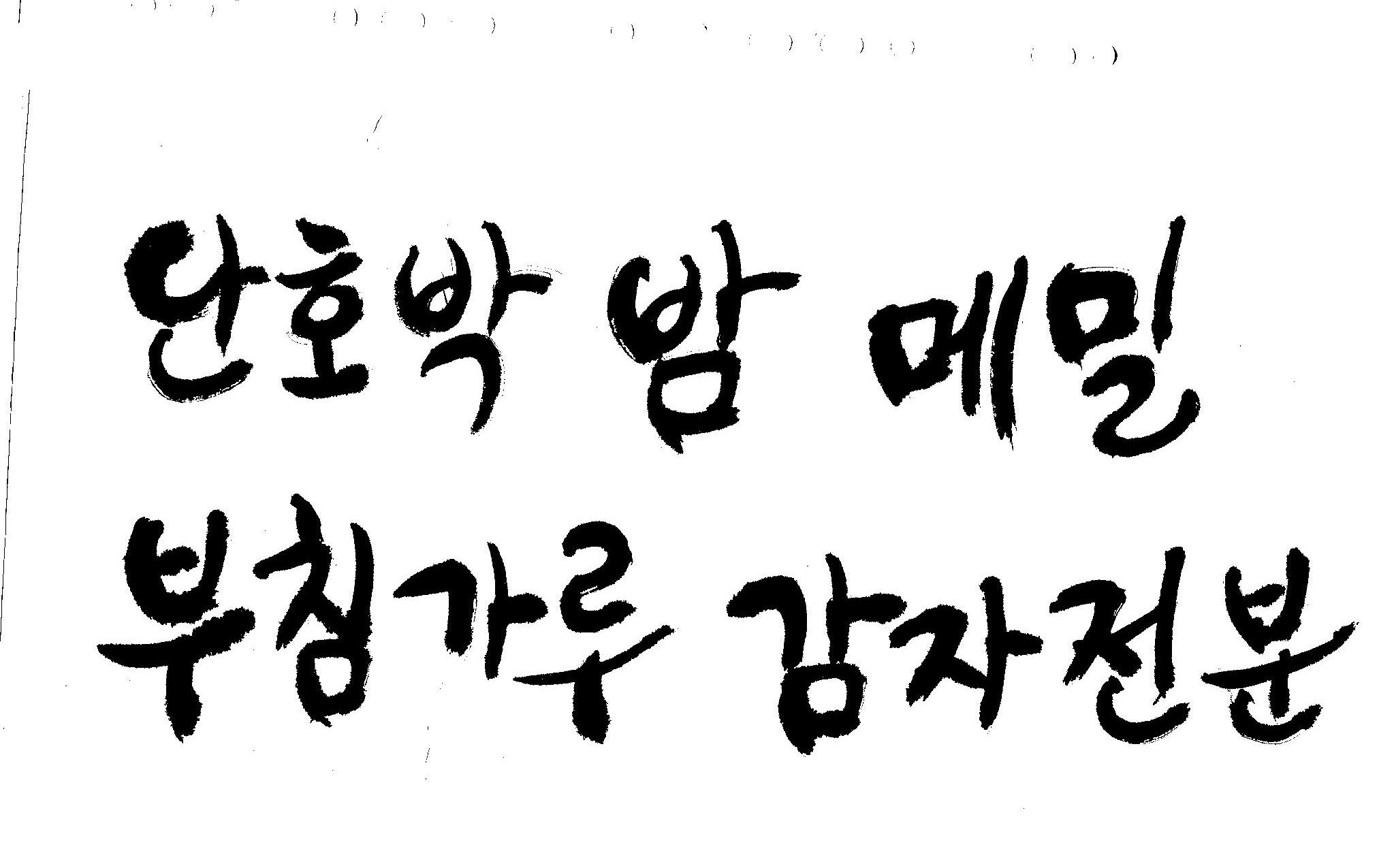 반갑습니다.~캘리 부탁드릴께요~ 김철호 일반 0 6338 2009.02.13 01:00 > > 안녕하세요~ 철호님~ > 항상 좋은자료~ 감사합니다. > 이번에 또 몇가지 부탁드려도 될지 모르겠어요~ > 내용은 단호박,밤,메밀,부침가루 감자전분,감자가루 입니다. > 좀 많죠~^^;; > 식품포장지쪽으로 들어갈 내용입니다. > 항상 부탁만 드리네요~ > 참 전에 올려주신건 곧 제품으로 나올 예정이예요~ > 나오면 찍어서 보내드릴께요~ > 항상 감사합니다.^^ >