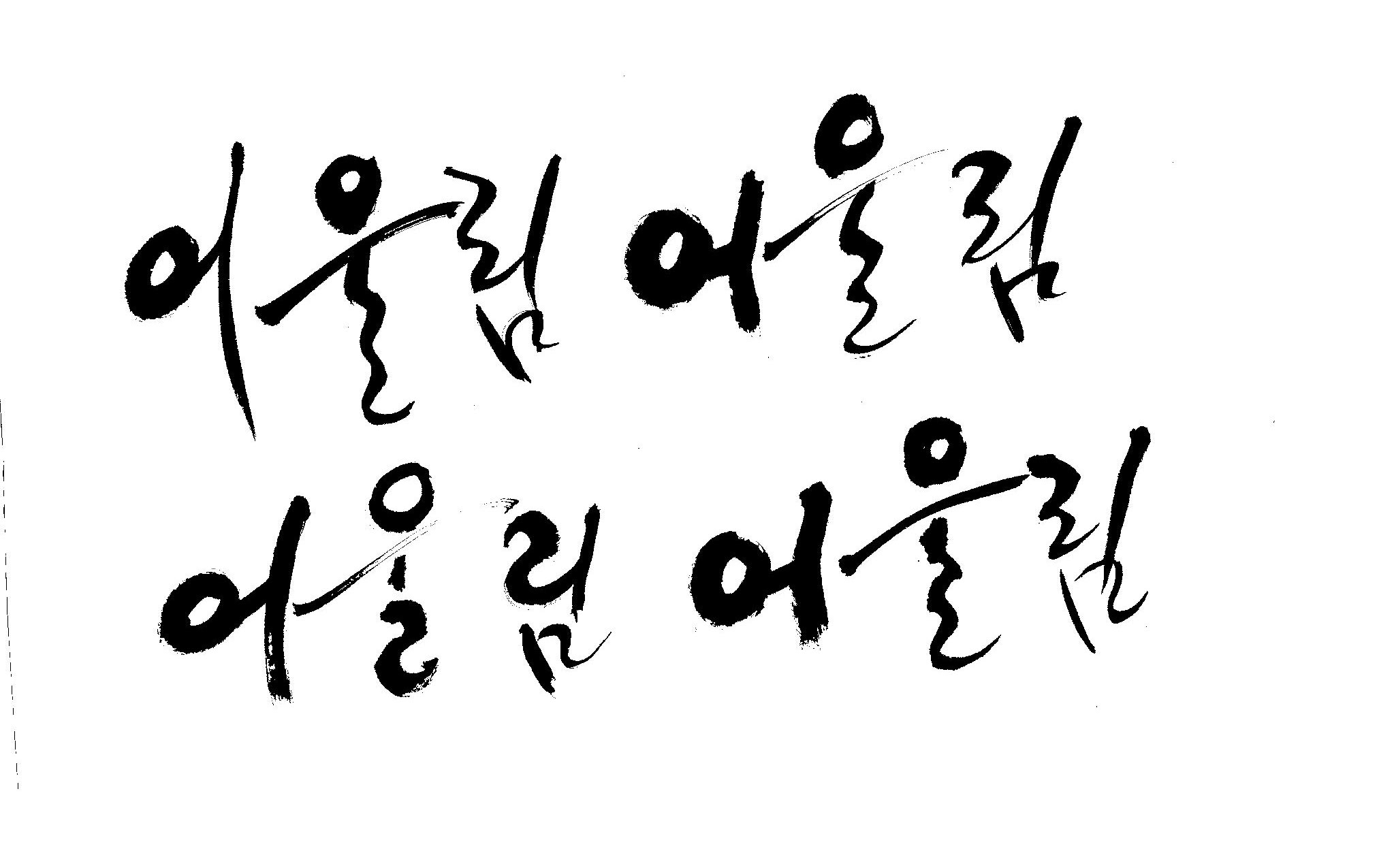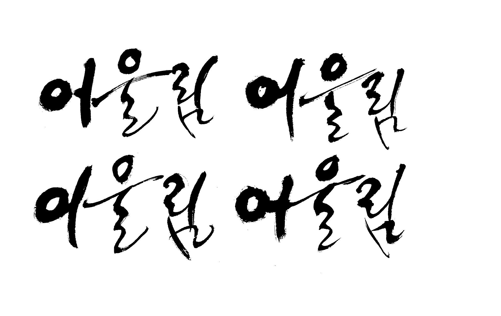 켈리 부탁좀 드릴께요~ 김철호 일반 0 11659 2009.01.14 10:49 > > > > > 책표지에 나갈 글씨로 '어울림'이란 켈리를 쓰고싶은데요... > > 도와주세요~ > > > 좋은 글이라서... > 긴....습작시간이 있었지만 > 결과물이 왜소하네요 > 유용하게 쓰시길... >