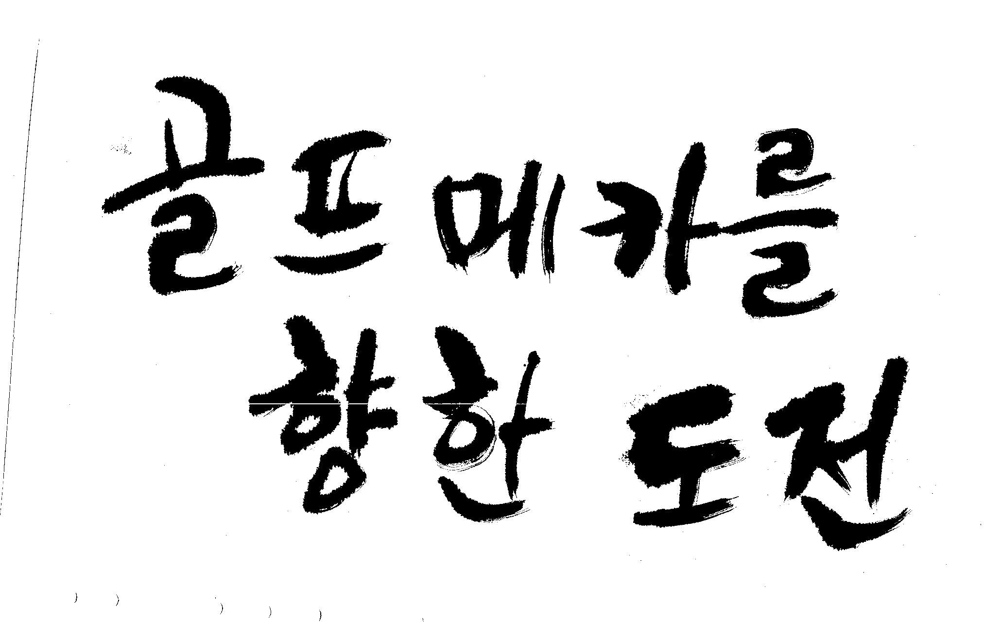우경의 행복한 캘리세상-골프메카 김철호 일반 0 8342 2009.07.18 10:26 > > 리듬감을 최대한 살리고 ㅡ 스포츠의 운동감과 밝음 > 기교섞인 획을 배제--일반적인 느낌 > 굵기변화를 통하여 도전 낱말을 강조 > 스타일은 비슷하지만 ...한 사람이 썼으니까 ㅎㅎㅎ > 서로 다른 글꼴을 올린 것은... 비교하여 보시고... > 편집자에게 선택권을 주는 것입니다 >