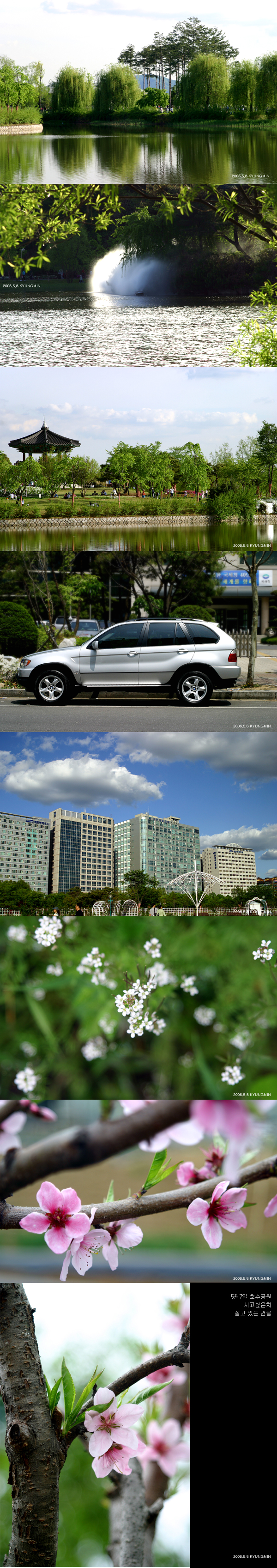 엥? 저그가 일산 호수공원이었어요?? 부분컷으로 보니 색다르네요~ 역쉬 일산 호수공원이 젤~이야^^ 다른곳 있을적엔...호수공원옆에 살면 자주가서 인라인두 타주고 산책두 하고...등등 생각이 있었구만.... 막상 가까운곳에 살아두 생각처럼 안되는게 아쉽네요~^^