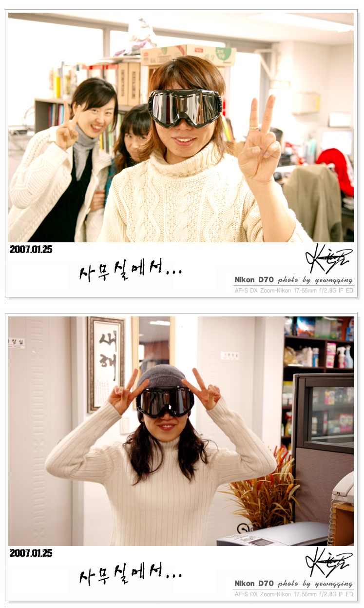 그래서 주문한 고글이 도착해서 직원들과..