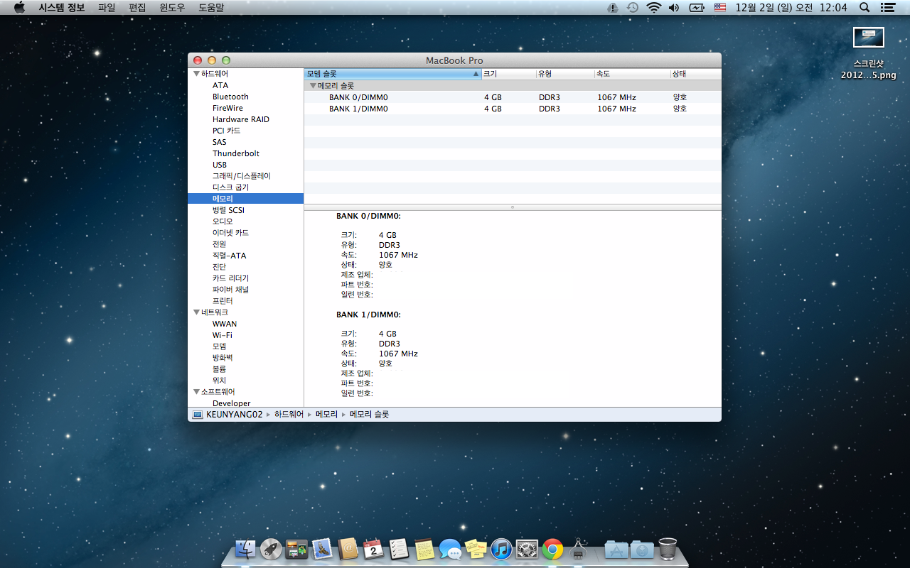프로세스 : 2.53GHz Intel Core 2 Duo