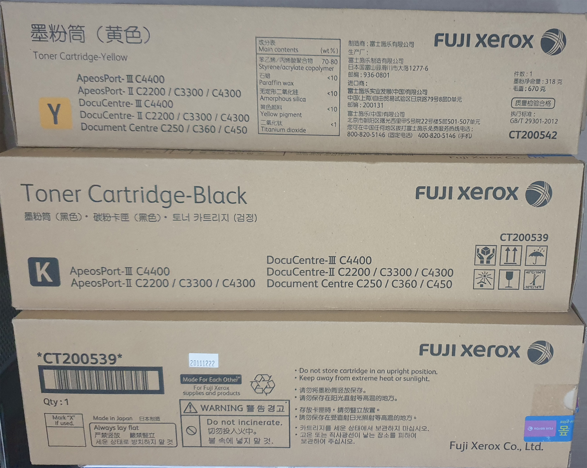 후지제록스 정품토너 4색(CMYK) 2세트와 검정색 2개 를 판매합니다