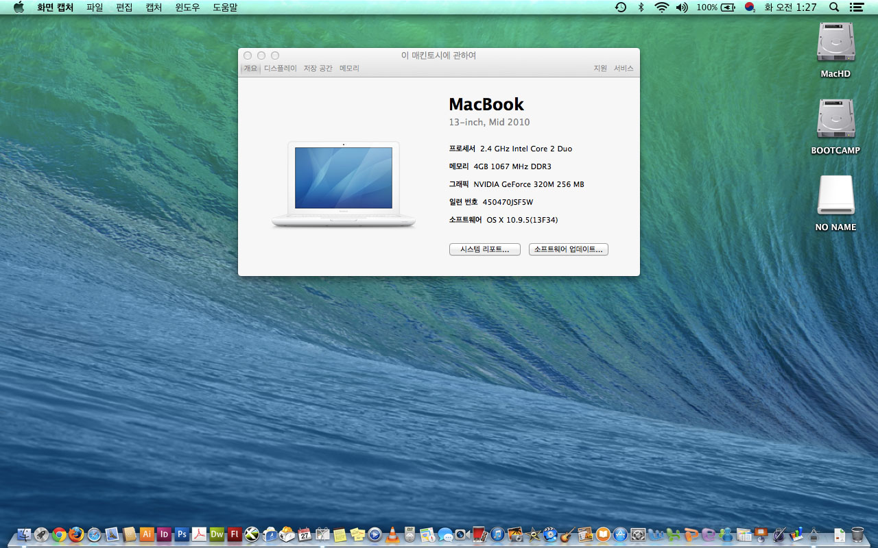 2010년 화이트 맥북 13인치- 맥 디자인프로그램들이 사진처럼