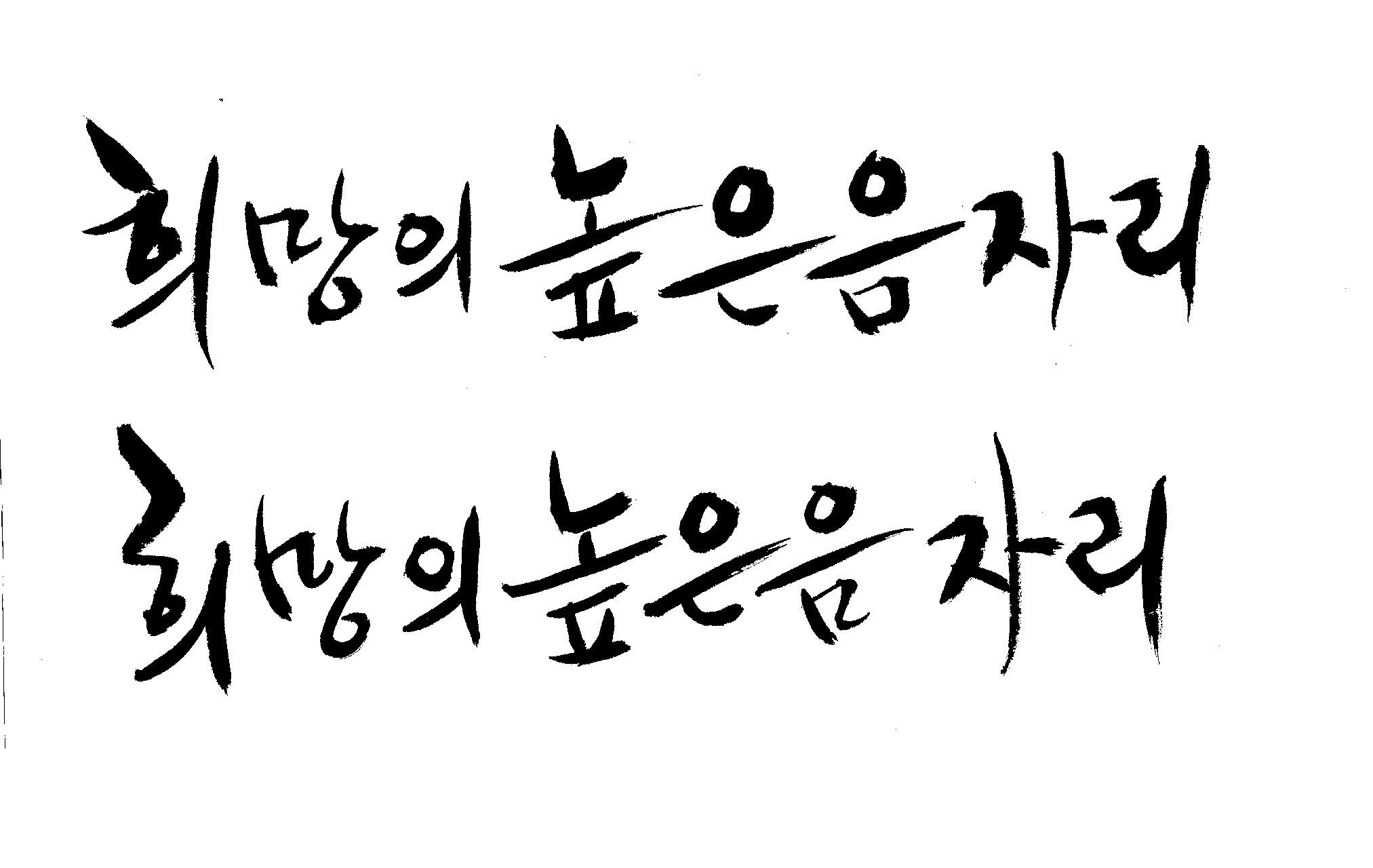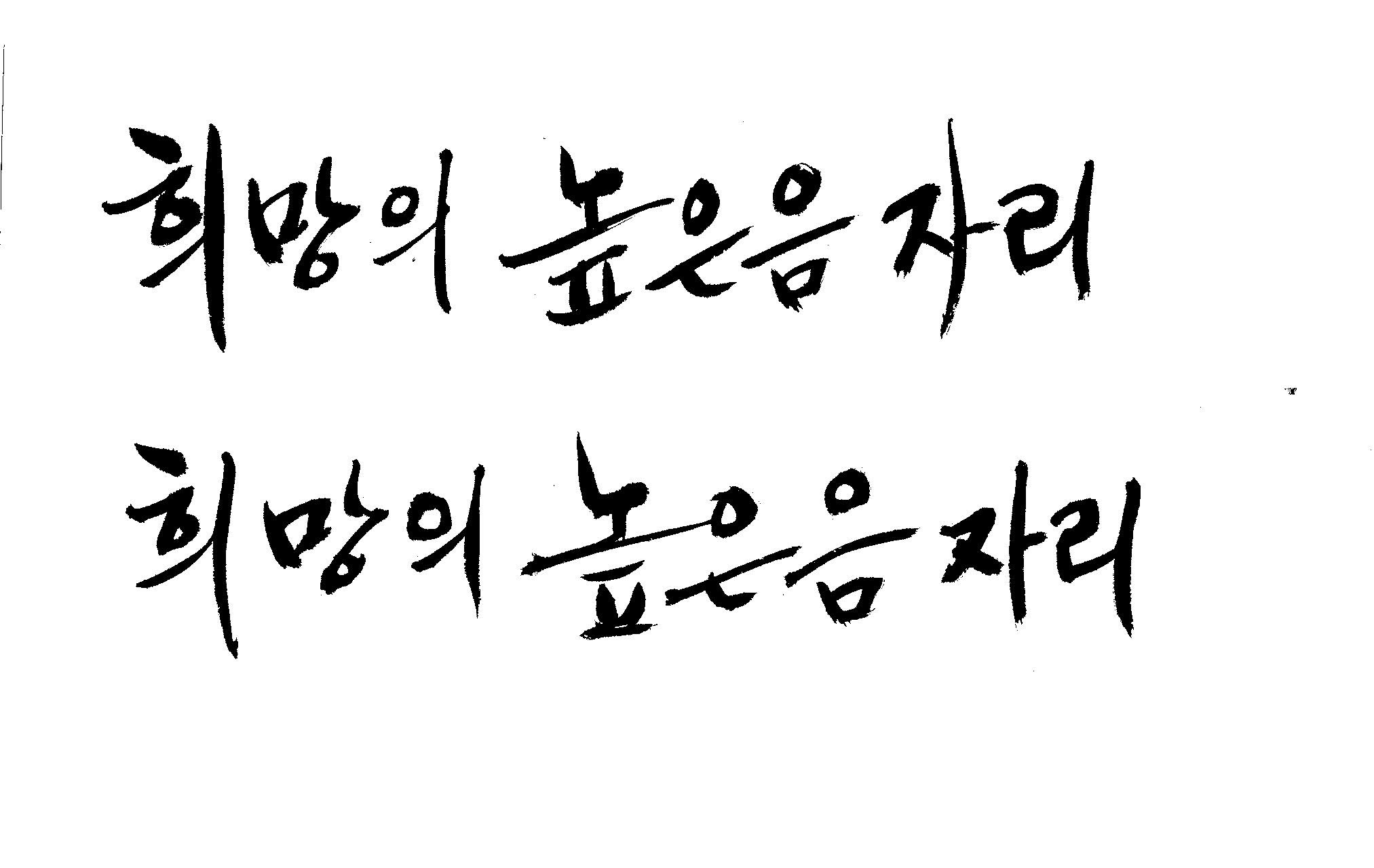 저도 캘리좀부탁이요 ^^;; 김철호 일반 0 6489 2009.01.14 10:59 > > > > > 희망의 높은음자리 > > > > 감사합니다 ^^ 꼭부탁드려욧 ㅎㅎㅎ > > > > 좋은 글이라서 신경썼는데 > 만족할 만큼 않나왔네요.. > 유용하게 쓰시길... >
